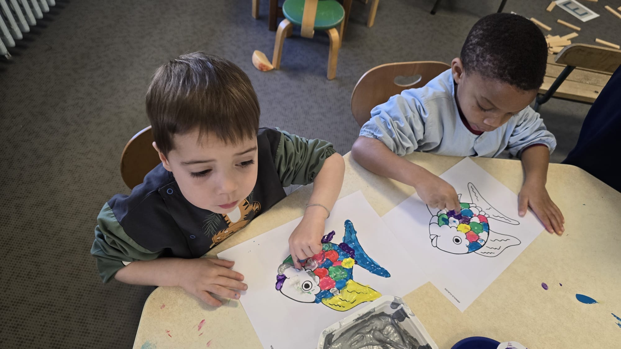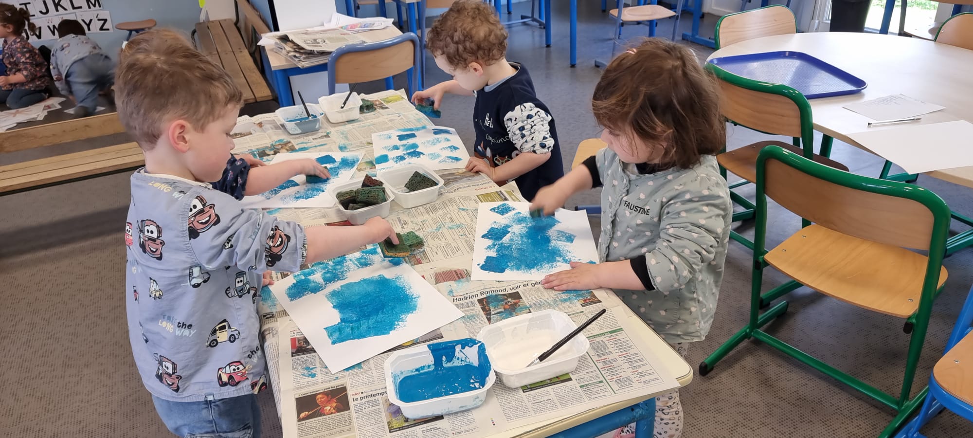 PS: " On a fait de la peinture avec des feuilles. On a fait une grande ligne."