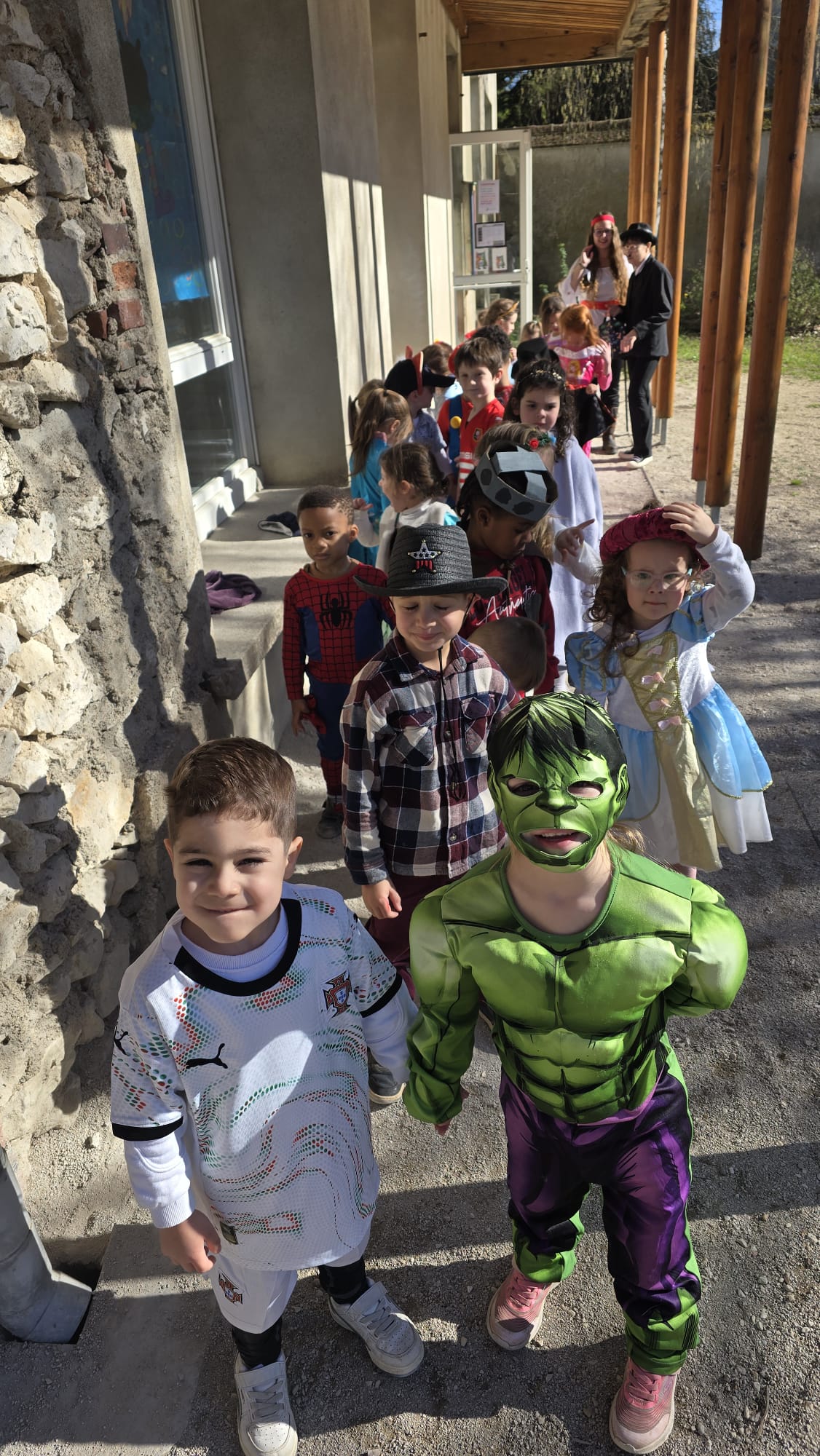 'Après on est reparti dans la cour et on a été en récré.' 'Les grands, ils ont couru dans d'autres récréations et nous un peu dans la forêt et après on est revenu au départ. Et on a recommencé du début.'